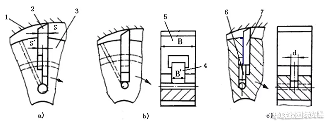a)階梯式葉片 b)子母葉片 c)柱銷式葉片
