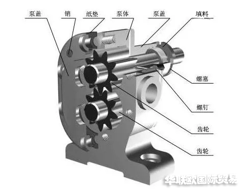 BUCHER齒輪泵結構特點:①結構簡單;②工作要求低;③端蓋和齒輪的各個齒間槽組成了許多固定的密封工作腔,只能用作定量泵。