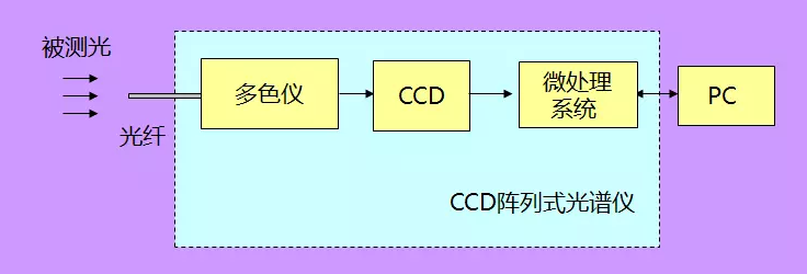 陣列掃描式光譜儀通常由多色儀、陣列式光電探測(cè)器、數(shù)據(jù)處理系統(tǒng)等幾部分組成,其中多色儀與單色儀最大的不同在于沒(méi)有機(jī)械運(yùn)動(dòng)部件,保證了儀器長(zhǎng)久運(yùn)行的穩(wěn)定性和測(cè)量重復(fù)性,在結(jié)構(gòu)上也可以設(shè)計(jì)得非常小巧緊湊。陣列探測(cè)器采用全光譜同步探測(cè)方式,具有檢測(cè)速度快、靈敏度高、光譜響應(yīng)寬、動(dòng)態(tài)范圍大、重復(fù)性好、分辨率高等特點(diǎn)。