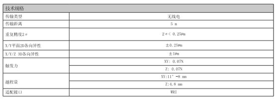 4)WRP60測頭是無線電傳輸觸發式測頭,適用于各種機床。兩個顯著特點一是電池壽命長,二是緊固的結構使它能夠安裝長度達1m的碳纖維加長桿。