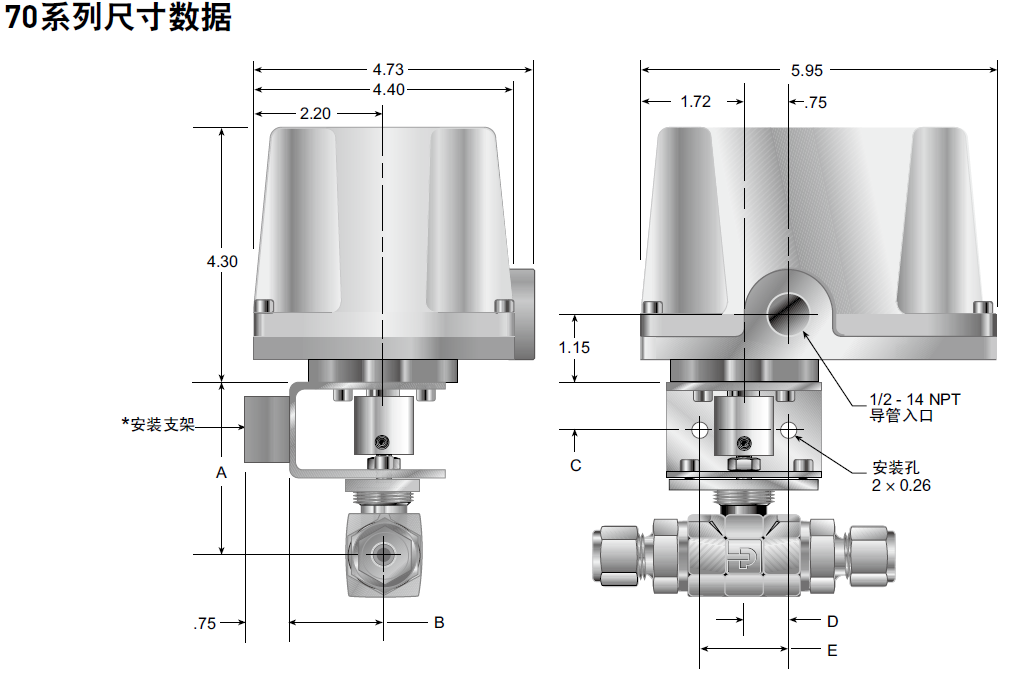 導(dǎo)電管接口: 1/2" NPT(兩處)